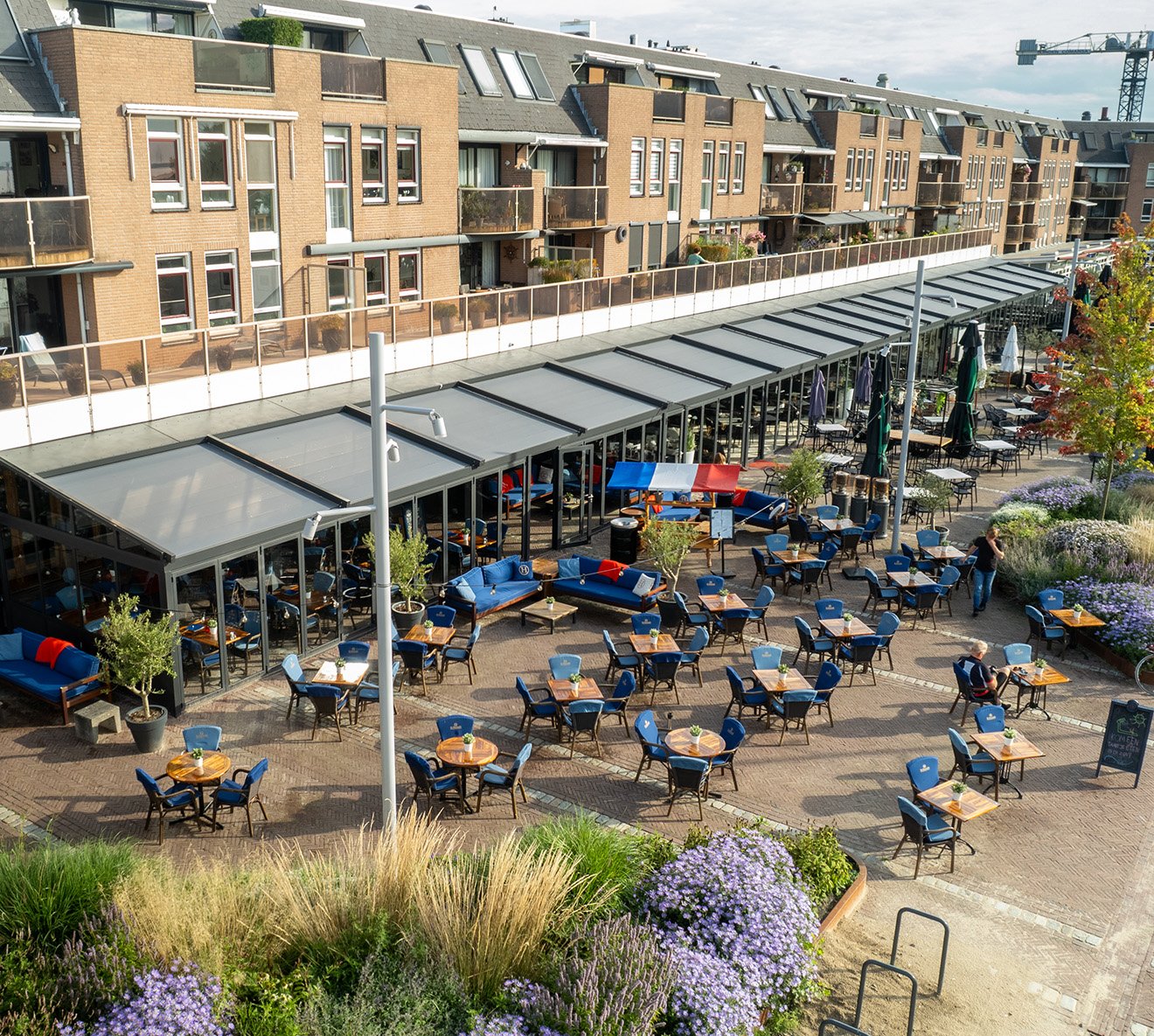 Ons op maat gemaakte inschuifbare terrasoverkapping met vouwdak van hoogwaardig doek vertegenwoordigt de top van architectonische finesse. Dit waterdichte schuifdaksysteem met een aluminium frame, kan naadloos worden geïntegreerd in elk projectdesign. Zo biedt u de bewoners of bezoekers beschutting tegen weersinvloeden met een simpele druk op de knop. En dat maakt u project nog aantrekkelijker. Voor horeca-ondernemers betekent een jaarrond terras meer omzet en dat zij nog meer interesse zullen hebben in het project dat u ontwikkelt.